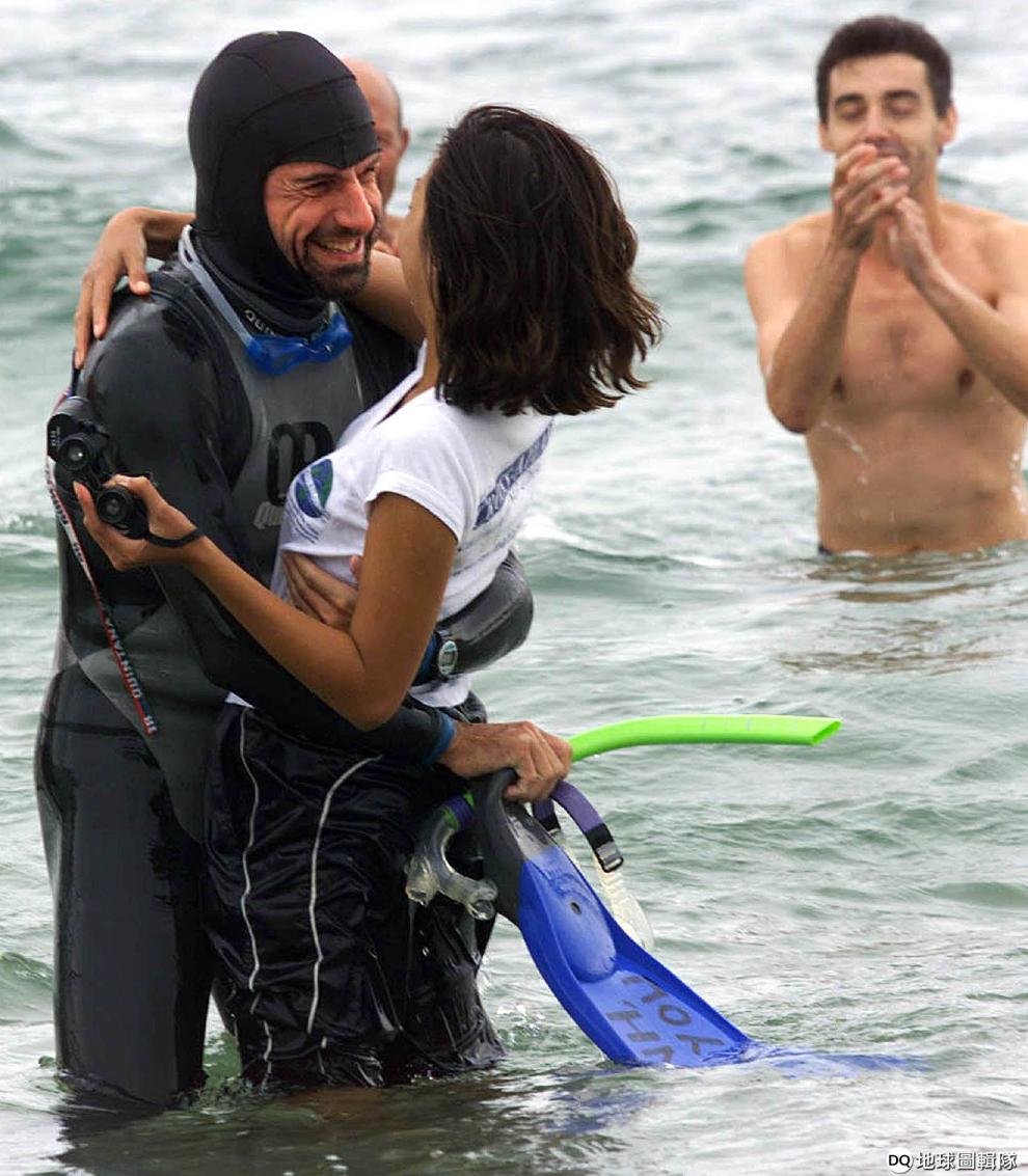 網友The Votex Swim1998年,勒孔特完成橫渡大西洋挑戰、在法國上岸後,受到當時女友的熱烈歡迎。