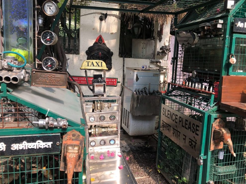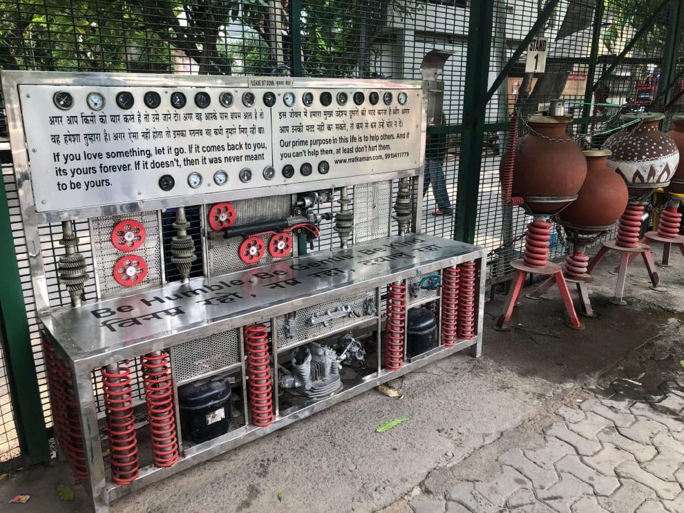 合作夥伴寬闊的大門、白色的兩層樓建築,豪華的傢俱從落地窗隱隱露出,以及細心照顧的綠色植物蜿蜒爬滿的圍牆,這座房子和其他鄰舍風格相當一致,但圍牆外頭卻有著一個我不知道該稱為「裝飾」還是「裝置」的東西。「我最初是從一個涼水機開始的,結果我的鄰居們通通抗議,他們說窮人會來。」完全可以想見納塔拉詹在這樣的社區裡「搞怪」,會遭遇多大的阻力,但這並沒有阻止他。