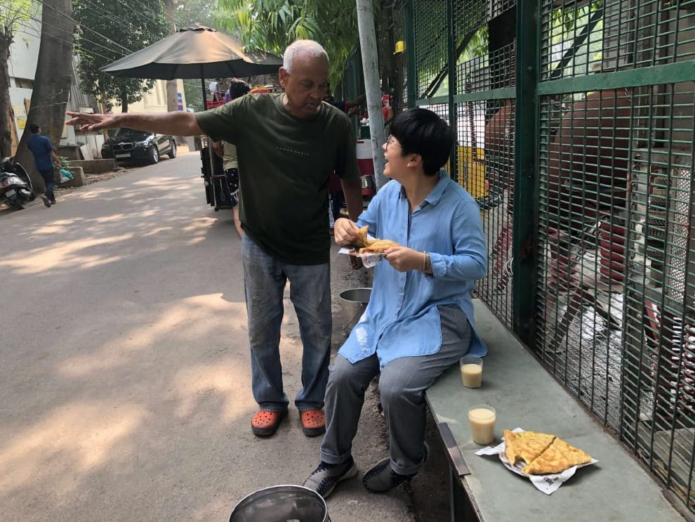 合作夥伴「妳吃早餐了嗎?如果還沒有吃,你出去就會看到外面有個「歐姆蛋人」(Omlet Man),妳應該去吃看看!」上午八點多採訪完軍事專家賽格爾(Brig. Arun Sahgal),他突然向我推薦起了巷口的歐姆蛋土司,我疑惑想著這種街頭小食,像他這樣一個住在豪宅區,從陸軍准將退役後在智庫工作的人,怎麼會如此大力推薦。「他用歐姆蛋吐司幫助小朋友。一份應該是15盧比,但妳吃的話記得要給更多,25盧比好了!」這沒頭沒腦的介紹,倒是引起了我的興趣,才一下樓就在巷子口看見樹下的歐姆蛋土司小攤。