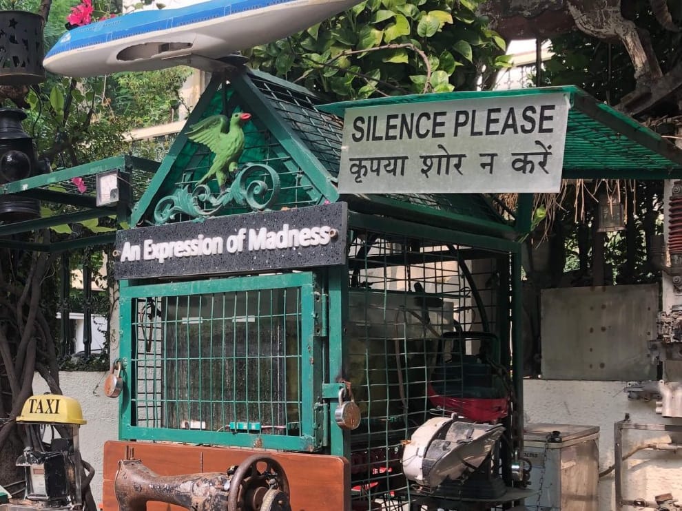 「我們都覺得自己是正常人,其實我們一點也不正常。」看見門外的裝置上,有塊板子寫著「一種瘋狂的表現」(An Expression of Madness),我便問了納塔拉詹,他說大多數的人,特別是有錢人,都會覺得自己和「那些窮人、壞人」不同,然而世界上根本沒有所謂的「正常人」。這讓我想前前一陣子火紅的韓國電影《寄生上流》裡,有錢才有資格善良、錢可以燙平一切。