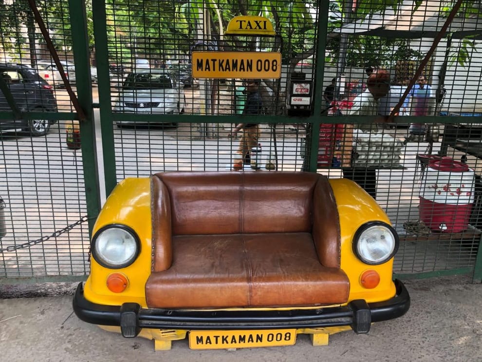 合作夥伴用廢棄汽車做成的座椅。照片提供/印度尤