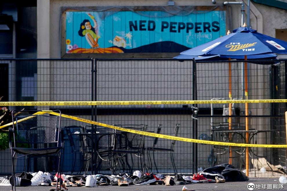 圖為代頓市酒吧槍案現場,警方已經拉起了封鎖線,地上一片狼藉,可以想見當時民眾逃跑和慌亂的場景。