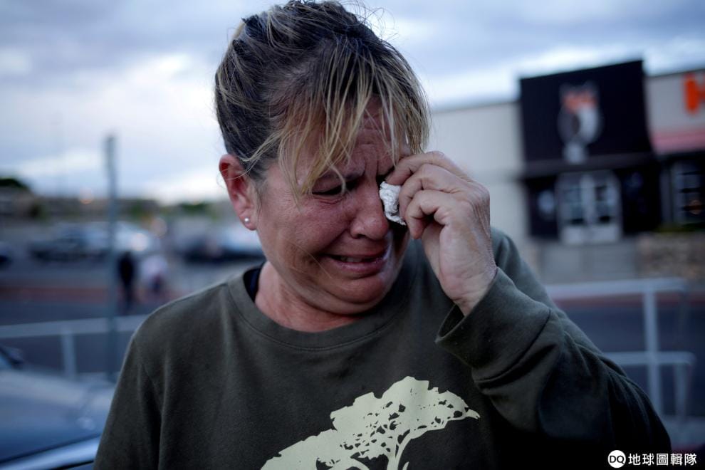 在發生槍案的德州艾爾帕索市沃爾瑪超市外,一名女子傷心地哭泣。