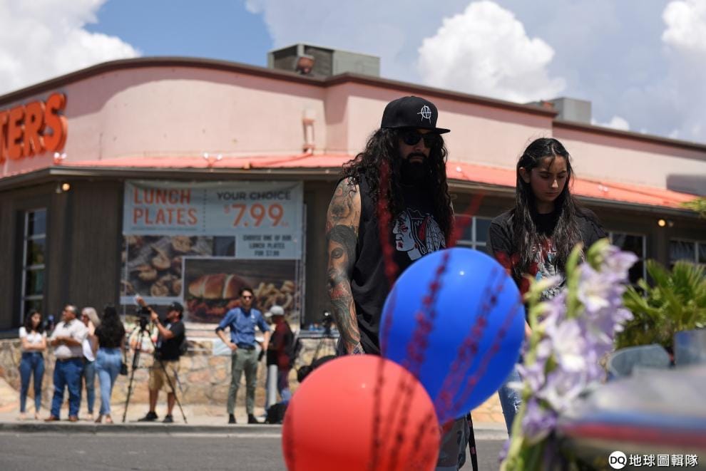 美聯社 / 達志影像民眾在沃爾瑪超市前臨時搭建的紀念區放上鮮花、氣球和玩偶默哀。案發當時,沃爾瑪超市內充滿為了返校採買的民眾。
