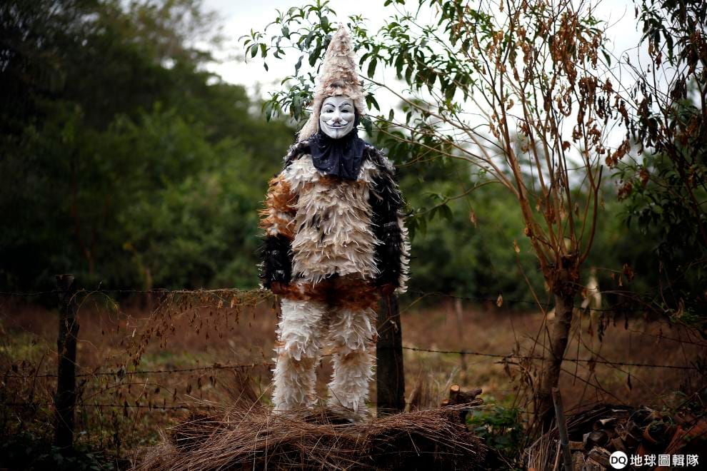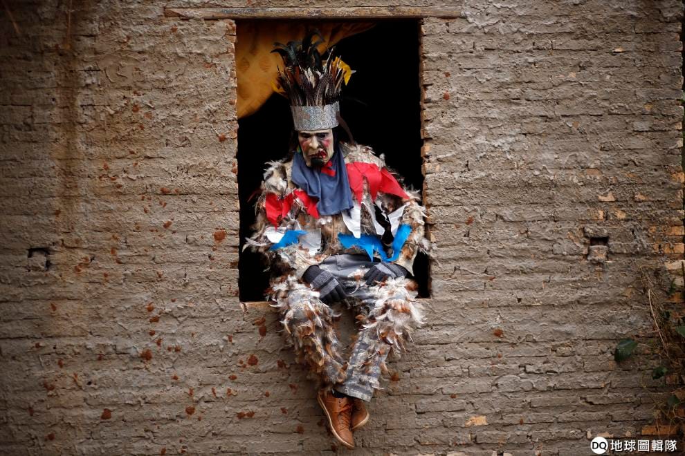 美聯社 / 達志影像和塞文一樣務農的傑納洛(Genaro Servin),在羽毛節這天也穿上精心設計的羽毛裝上街遊行。