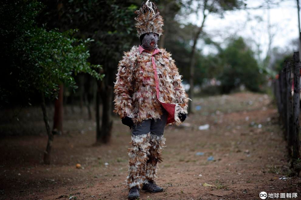 在羽毛節這一天,你會在恩博斯卡達市街頭找到許多如上圖打扮的民眾。圖為當地鐵匠歐維拉(Pablo Ovelar)。
