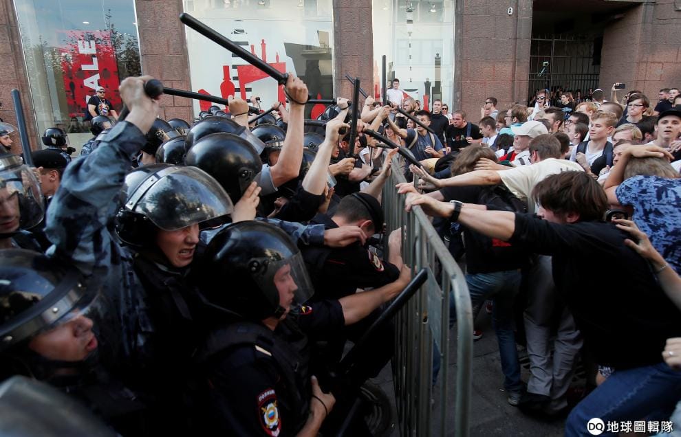 同時,俄國警方也不遺餘力地鎮壓以和平訴求為主的抗議遊行活動。過去的幾個周末,超過萬人走上莫斯科街頭,參與了三場未申請的非法集會,以及 7月20日的合法遊行活動。儘管俄國警方聲稱這些參與抗議活動的群眾使用暴力,英國《衛報》卻指出,遊行中大部份的暴力行為都來自俄國警方。