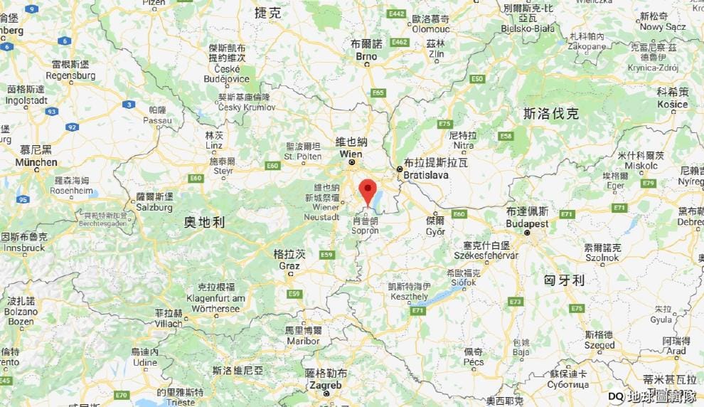 圖中紅色地標處,就是當時舉行「泛歐野餐」的奧匈邊界。