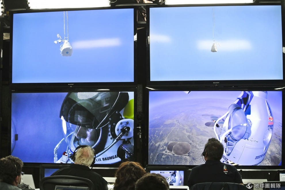 gettyimages地面控制中心內,每個人都在看著保加拿跳下去的瞬間,為他祈禱!挑戰成功後的記者會上,保加拿也感謝這些讓他如願挑戰成功、一路守護他的夥伴們。Joerg Mitter/Red Bull Stratos via Getty Images