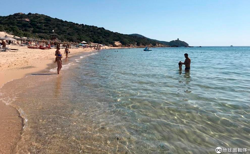 圖為遊客在薩丁尼亞島知名的白沙灘上,享受悠閒的夏日時光。