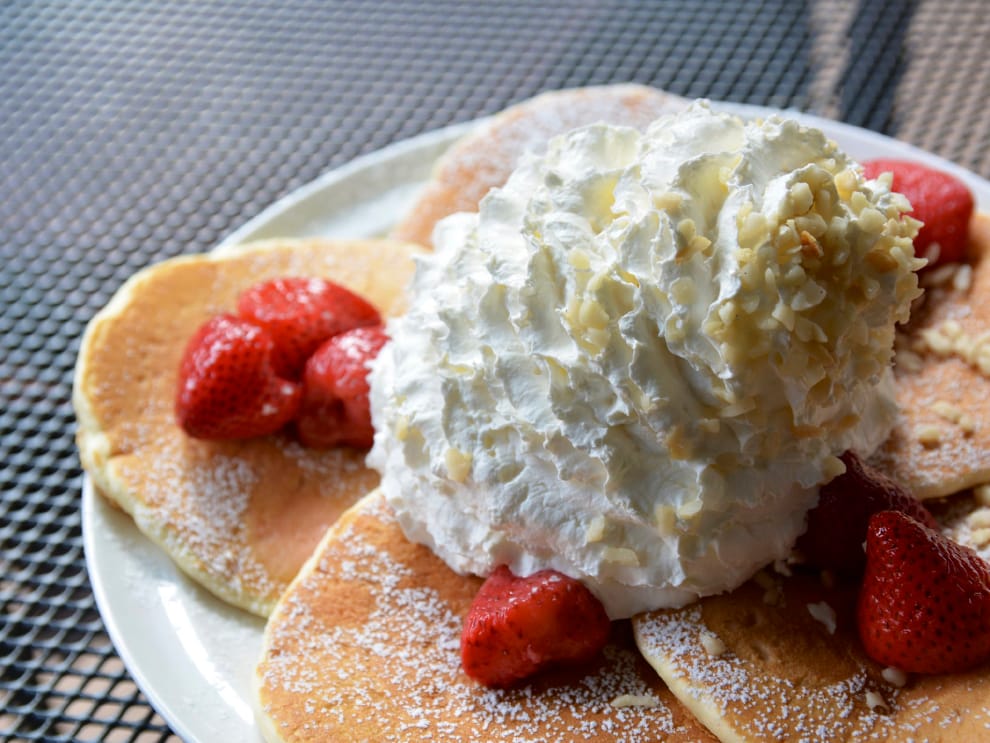 圖為來自夏威夷的鬆餅店Egg'n Things的鬆餅,滿滿的鮮奶油是其招牌特色。