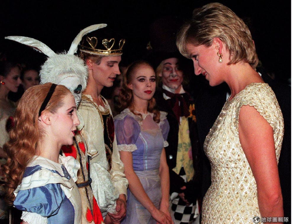 撲克牌、遲到的女孩、還有拿著懷錶的著急兔子,這部動畫甚至還在2010年成了一樣熱銷的電影《魔鏡夢遊》。照片中右邊的女性就是已故的黛安娜王妃。
