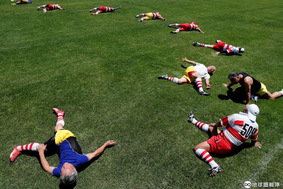 路透社 / 達志影像除了自己練習,不惑俱樂部(右)也會和其他以中高年齡族群為主的橄欖球俱樂部(左)舉辦友誼賽。