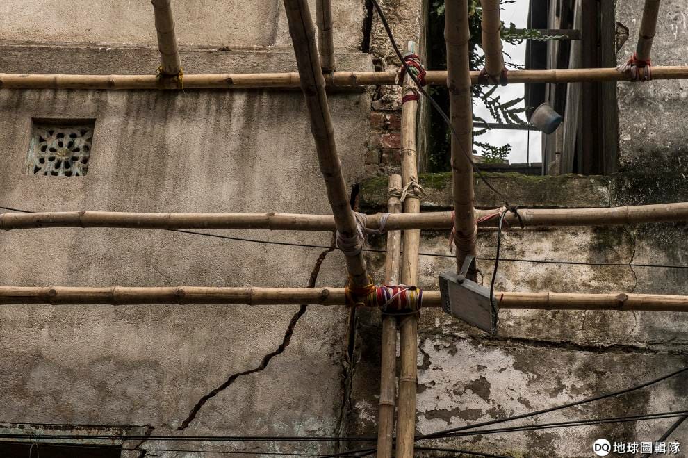 在畫面中,可以看到有一棟建築物已經搖搖欲墜。這裡有的建築建了 120年,有的甚至建了 300年。