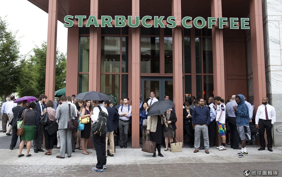 路透社發生槍案後,廠區內建築物遭到封鎖,園區內的人員擠在店門外。