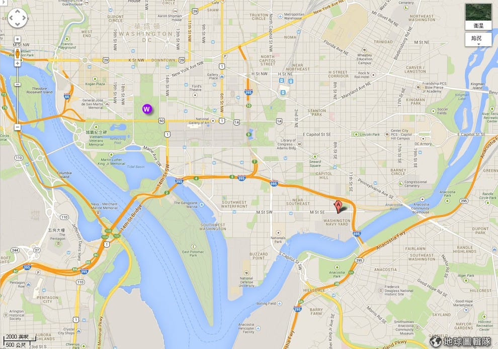 路透社圖中A點就是這次發生槍案的地點,紫色W標記點就是美國首府白宮的位置。因為槍案鄰近首府所以引起相當的關注