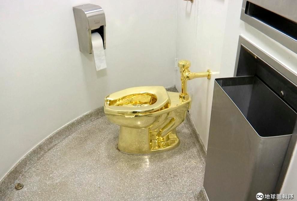 義大利藝術家打造的黃金馬桶於英國布倫海姆宮展出時不翼而飛,這座馬桶曾在美國紐約古根漢美術館展出。