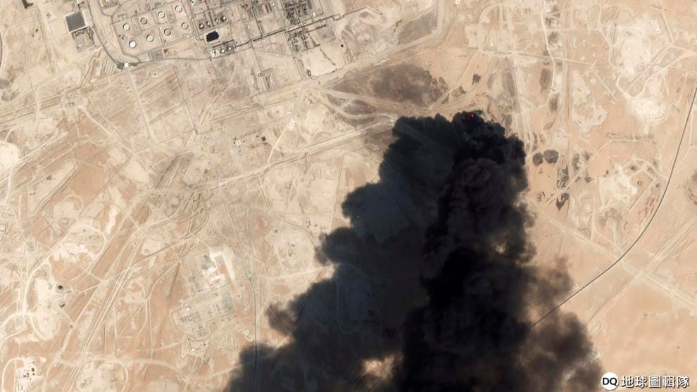 從Planet Labs Inc.提供的衛星照片可以發現,沙國的阿布蓋格煉油廠在遭到無人機攻擊後冒出陣陣濃煙。