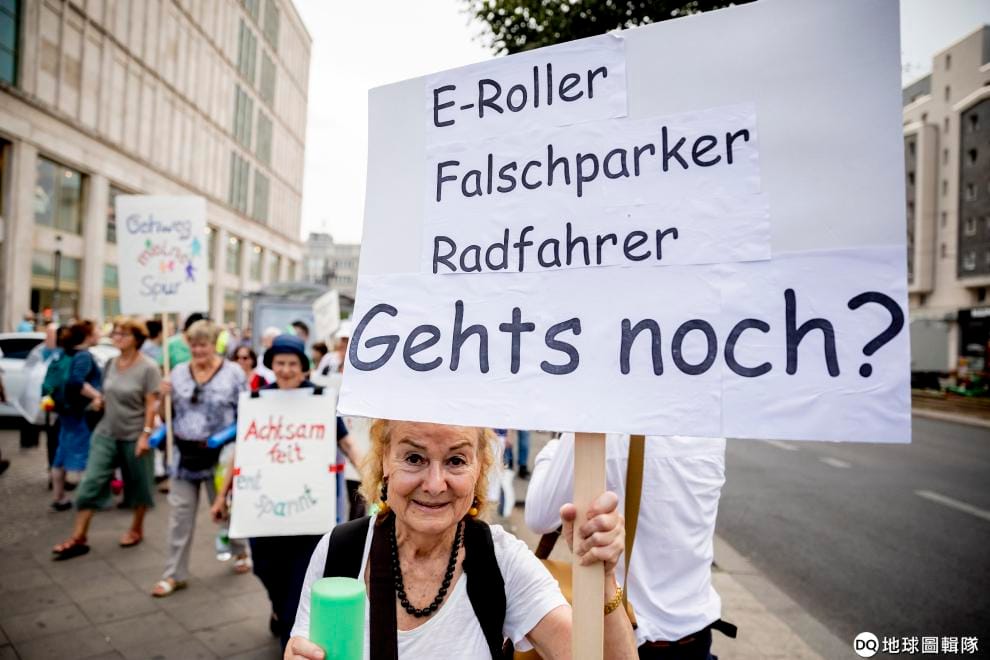 今年 8月29日,柏林民眾上街示威,抗議電動滑板車亂騎亂停,造成交通意外頻傳。