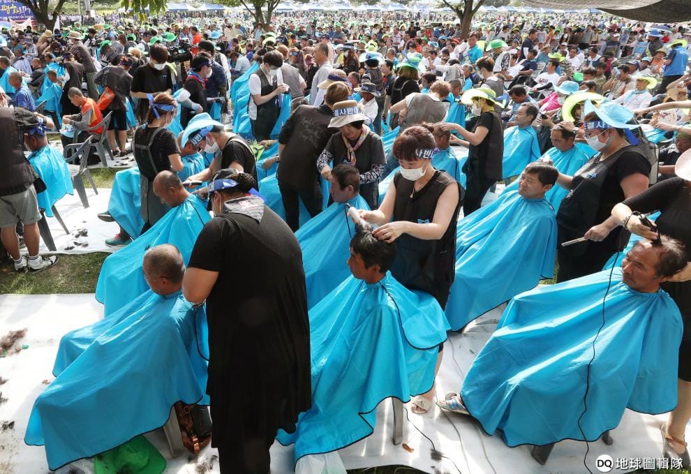 南韓保守派「自由韓國黨」代表黃教安,於本周一在公開場合中剃髮,抗議法務部長未因貪汙指控受到懲罰。