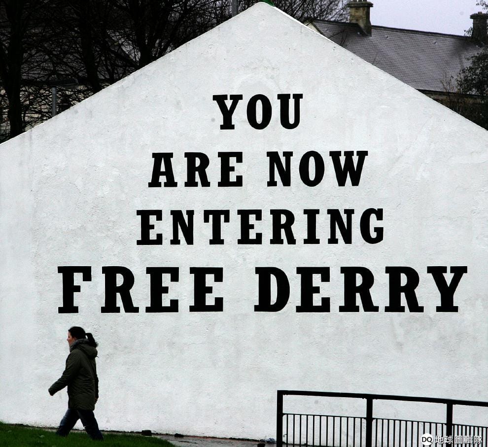 人們走過著名的「自由德里牆」,上頭寫著:「你現在正在進入自由德里區。」達里區在 1969至1972年之間,曾由愛爾蘭民族主義者宣告自治。