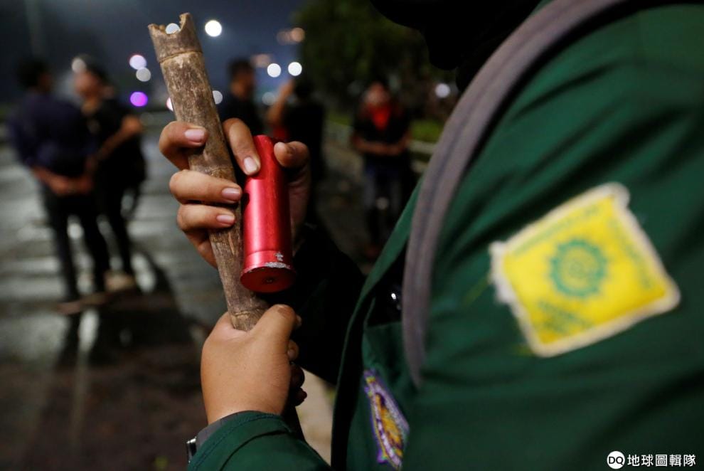 在示威現場,一名抗議民眾手拿催淚瓦斯的殘骸。這一次大批學生上街頭,也讓人想起 1998年的印尼學運,當時由學生領導的政治運動推翻了統治印尼 30年的獨裁總統蘇哈托(Suharto),讓他黯然下台。