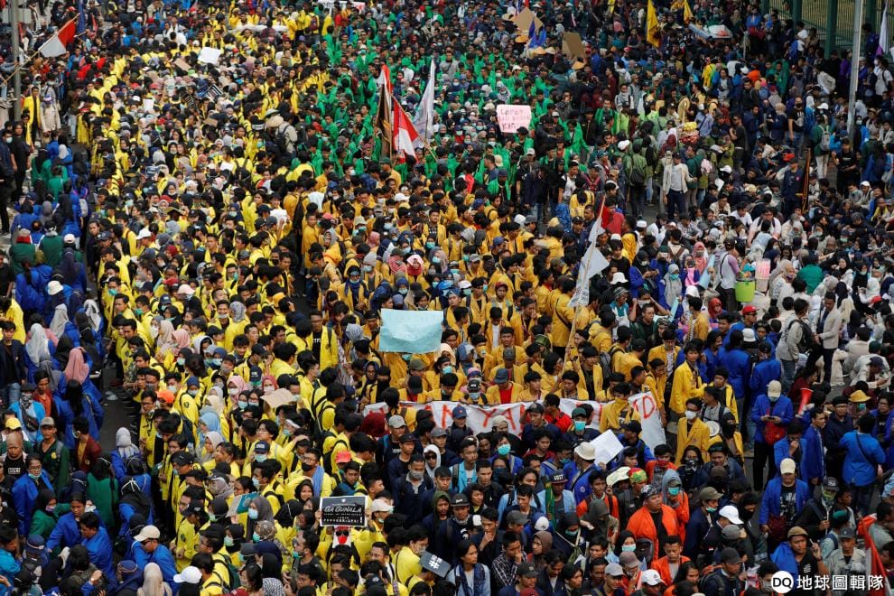成千上萬名印尼大學生靠著包圍國會建築,大聲呼喊出自己的訴求。