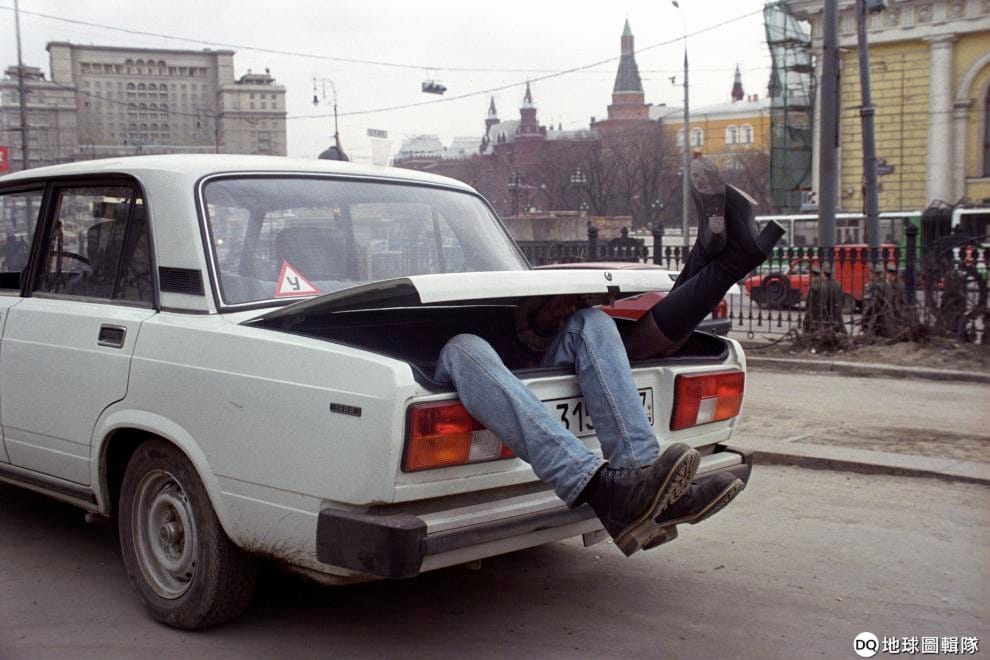 圖為 1997年4月,一對醉倒的夫婦就這樣把自己塞進後車廂休息。這種畫面在現在的俄國已經看不到了。