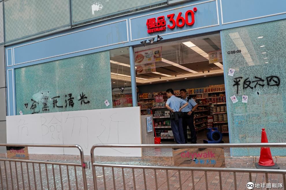 路透社 / 達志影像本月 2號在荃灣,香港警察正在調查一家遭到破壞的店面。