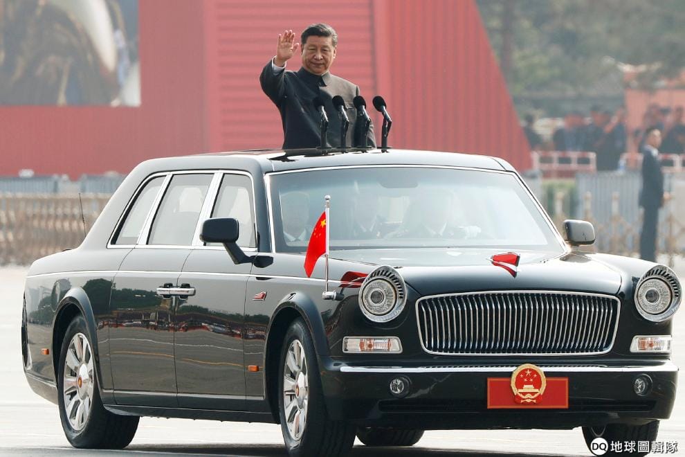 圖為在中國北京,進行著閱兵典禮的中國領導習近平。