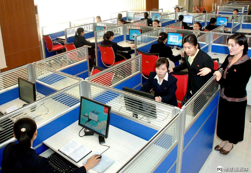 2008年,北韓政府公開了國內電信業者公司內部的照片。圖為北韓女性在電信公司的客服部門工作。