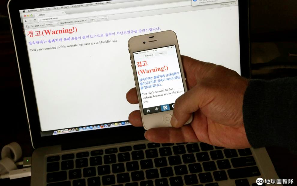 2015年,記者試圖使用北韓手機開啟Instagram時,一則警示訊息指出Instagram是被列入黑名單的危險網站。