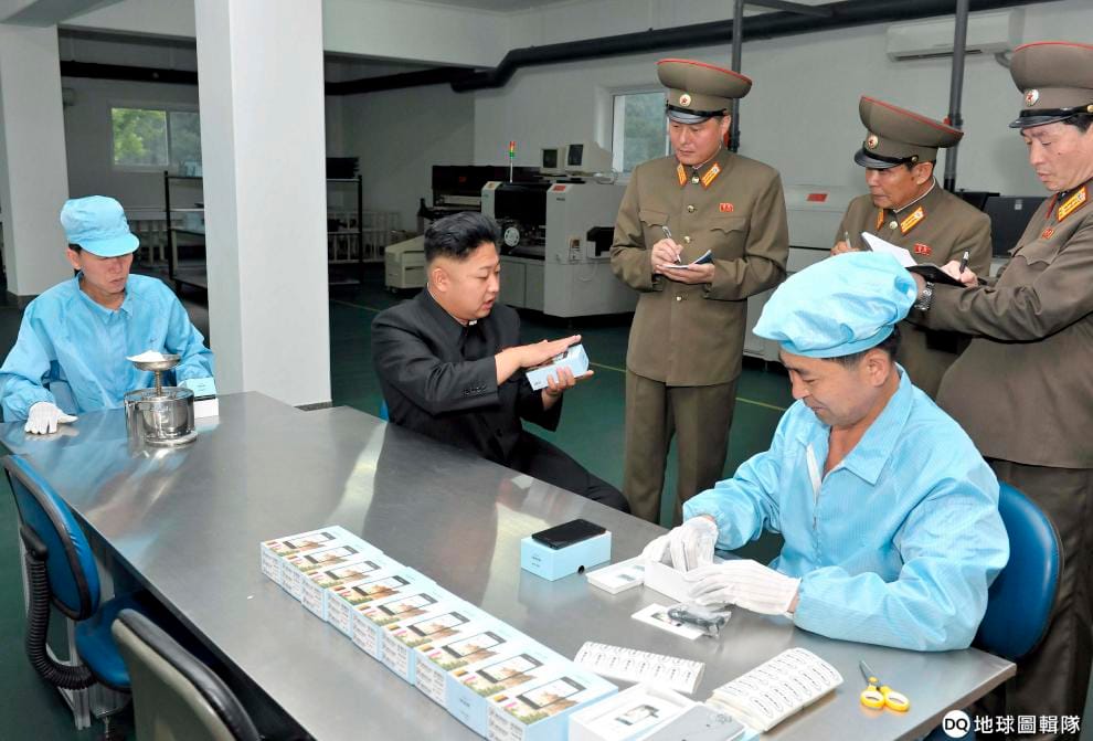 2013年,北韓領導人金正恩參訪北韓的一間手機製造商。