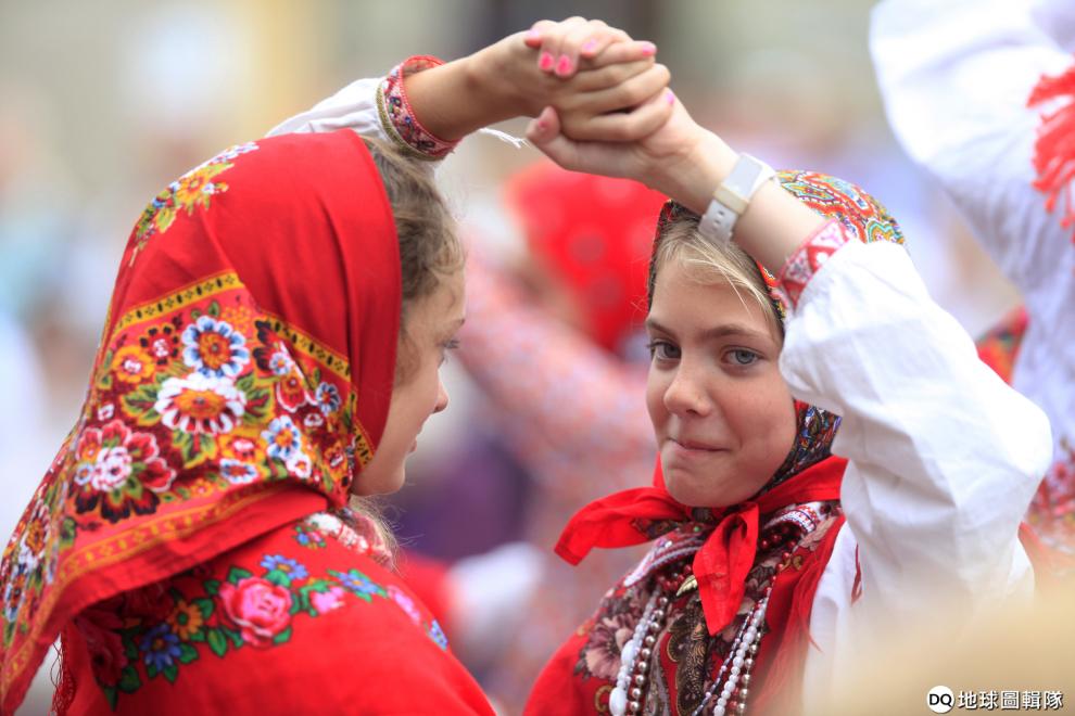 來自愛沙尼亞基努島的女性,穿著傳統服飾跳舞。