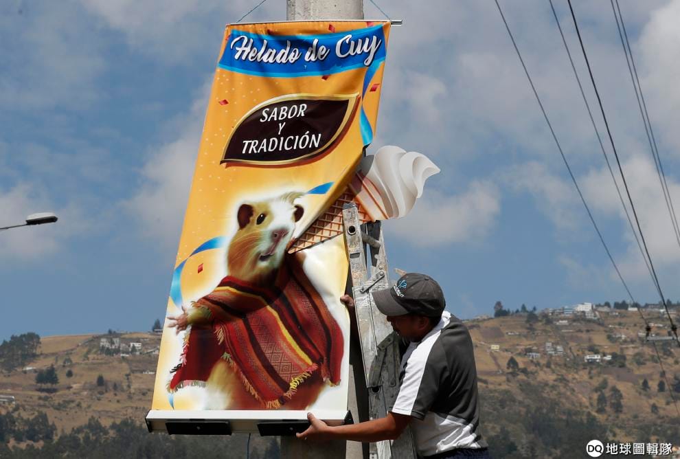 這間奇特的天竺鼠冰淇淋店開設在連接厄瓜多首都基多(Quito)和桑戈爾基(Sangolqui)的高速公路旁。簡單的攤位設有兩組內用桌位,隔壁比鄰牙醫診所和其他商家。即便生意規模很小,每周仍平均賣出 150球單價一美元(折台幣約 30元)的天竺鼠冰淇淋。