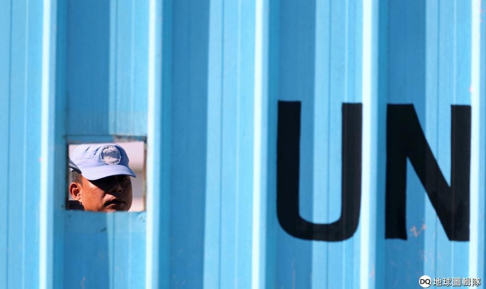 在靠近以色列邊界的村落,派駐於此的聯合國維和部隊正在站崗。