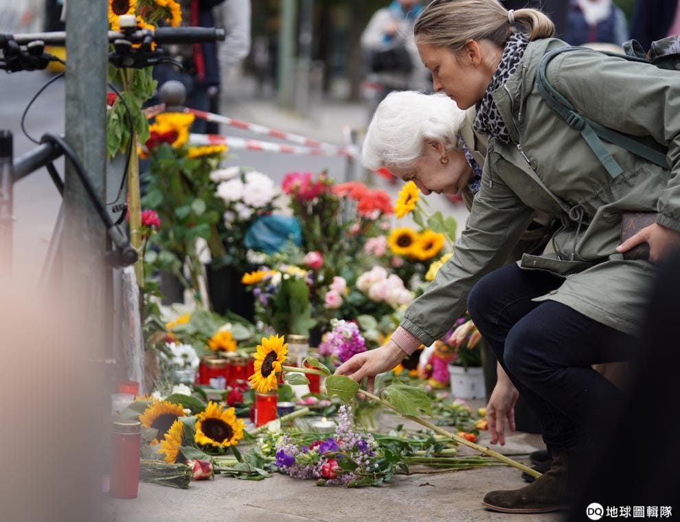 9月7日,休旅車事故發生後,德國柏林的民眾在意外事故發生的路段放上鮮花,追悼身亡的行人。