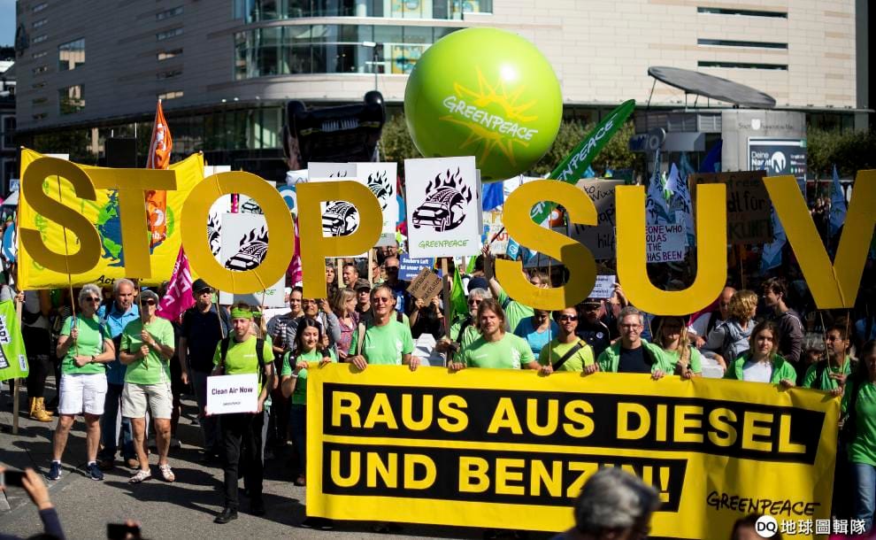 9月14日,示威者聚集在兩年一度的法蘭克福車展,高舉「停止休旅車」的標語,抗議車廠針對休旅車的製造和行銷。