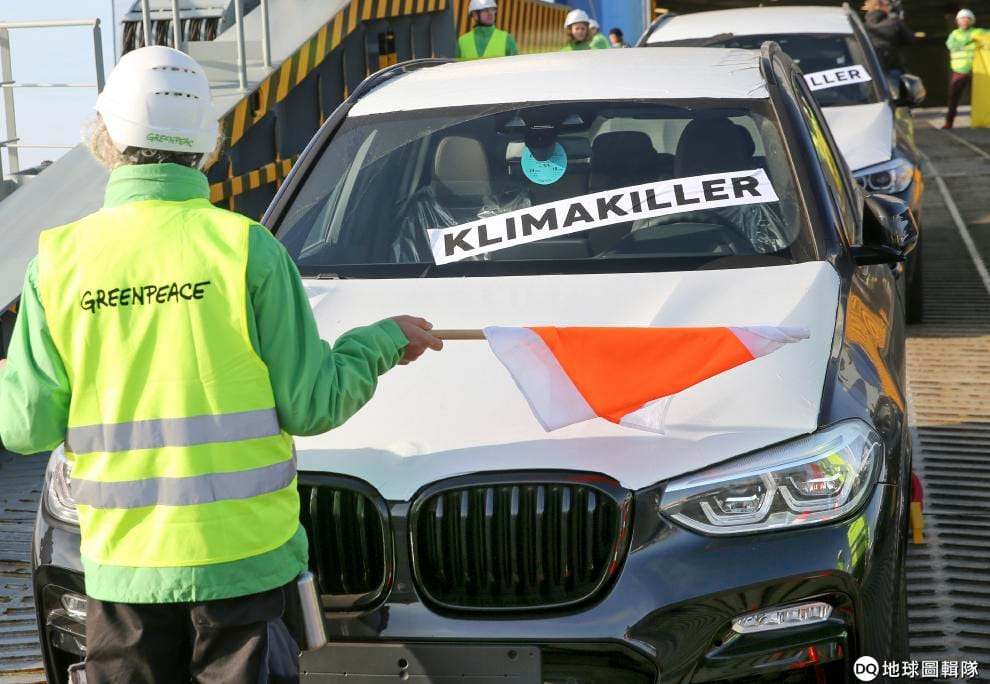 9月7日,綠色和平組織成員在不來梅港阻礙休旅車的進出口活動。