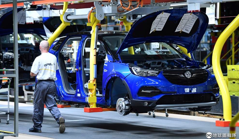 圖為德國車廠內,一台休旅車正在生產線上被組裝完成。