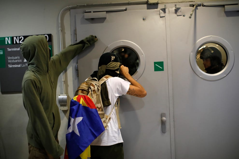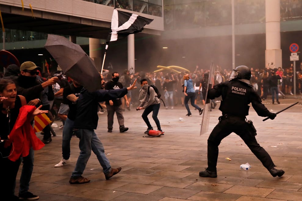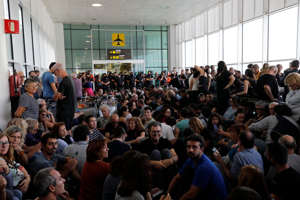 在巴塞隆納的埃爾普拉特機場(El Prat),數以千計的示威者湧入第一航廈和停車場抗議,從社群網路上流傳的影像中,可以看到示威者試圖突破警方的封鎖線、或是警方試圖以警棍和催淚瓦斯驅散民眾。