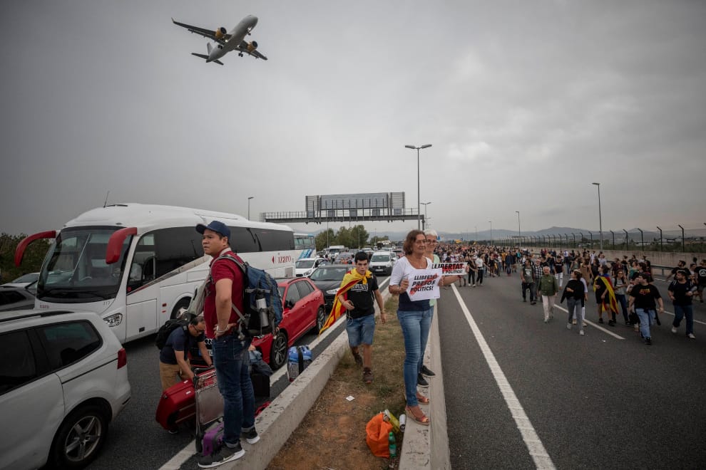 本周一,許多人以封鎖埃爾普拉特機場道路、佔領航廈的方式,對西班牙最高法院的判決表達不滿。
