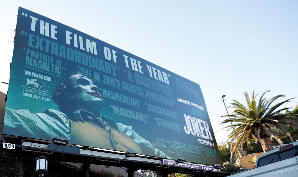 飾演亞瑟的男星菲尼克斯表示,他在演戲時有參考假性延髓效應的症狀。圖為電影《小丑》的廣告看板。