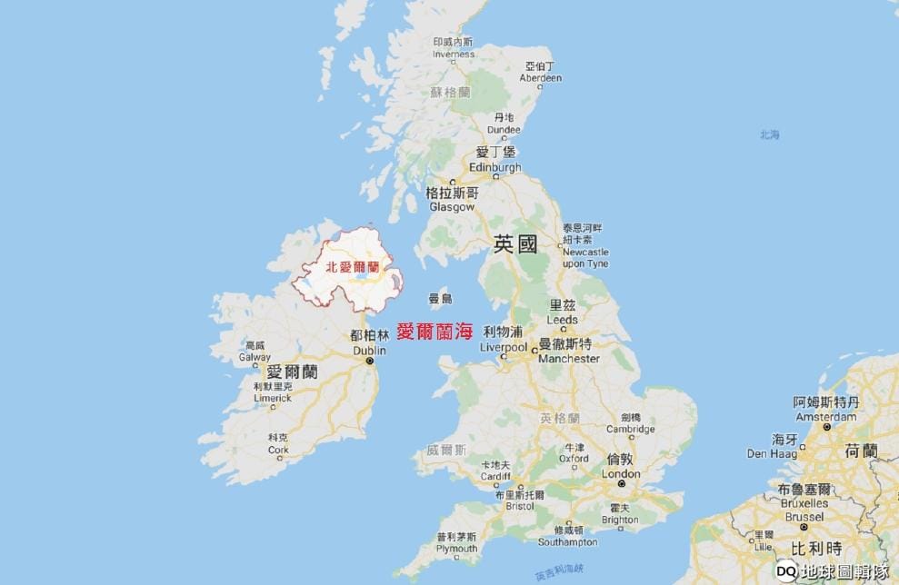 紅色區域標示的北愛爾蘭地區屬於英國國土一部份,也受脫歐公投影響,即將離開歐盟。與北愛爾蘭地區接壤的愛爾蘭則是獨立的歐盟國家,待北愛爾蘭地區與英國脫歐後,兩地區之間的邊界將成為英國與歐盟唯一的陸路邊界。