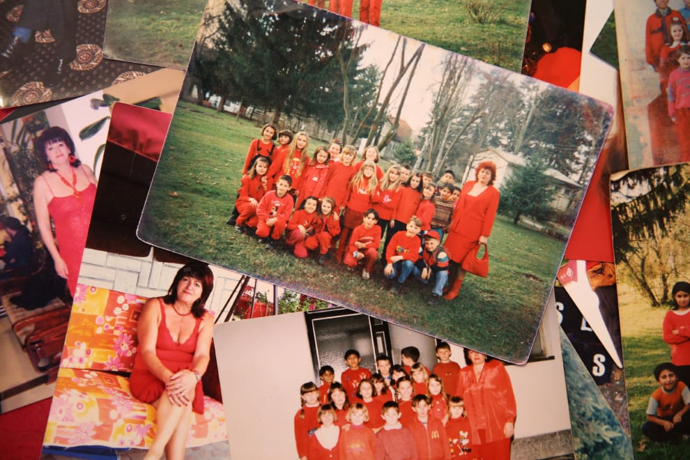 以前是老師的羅伯妮克,除了自己喜歡穿紅衣,也留下不少學生穿紅衣跟她合影的照片。