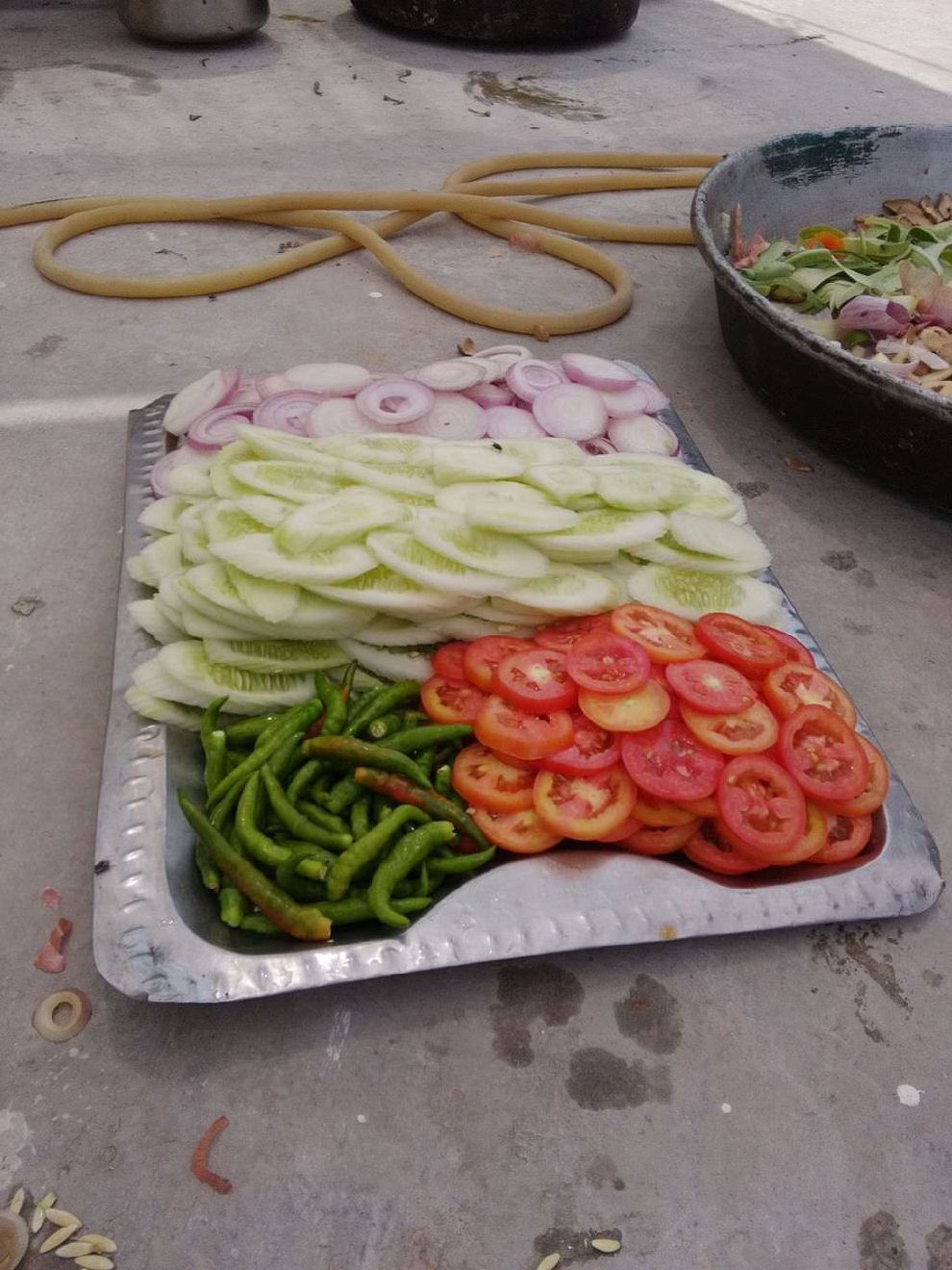 除了大家熟悉的西式沙拉外,印度也有道地風味的印度沙拉組合,例如白蘿蔔、番茄、黃瓜、洋蔥切片以及綠辣椒,都是相當受歡迎的配角,不只作為沙拉食用,也會在吃重口味的料理,像是咖哩或烤肉時搭配解膩。不過建議來到印度的初階旅行學員盡量避開生食,這通常是大家會拉肚子中標的第一招。