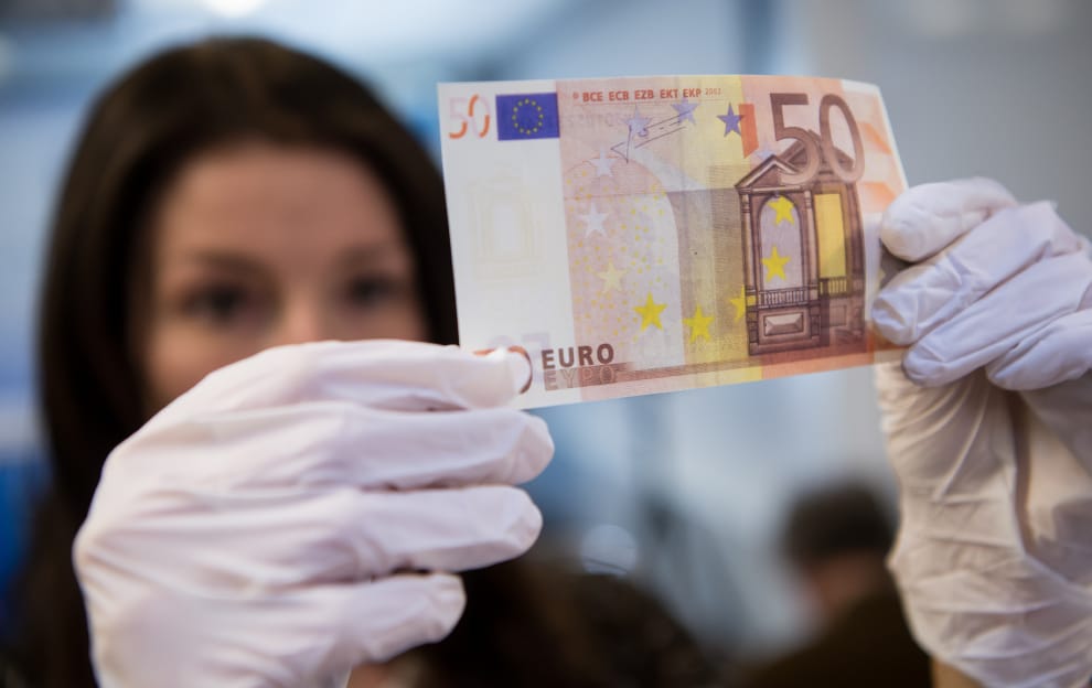 義大利的印鈔廠內,員工正在檢視新印好的歐元鈔票。