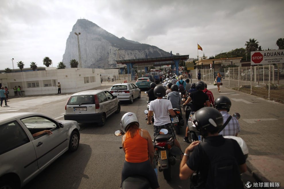 上圖為民眾大排長龍,等著通過西班牙與直布羅陀的邊界。