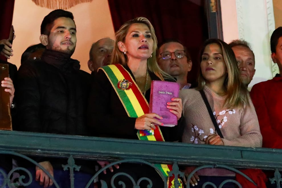 本月 12號,參議院副議長阿涅斯站在陽台上,手持《聖經》宣布自己將擔任臨時總統。自從玻利維亞幾名政要相繼請辭後,她在這兩天擔起與軍方斡旋、維持街道秩序的角色。