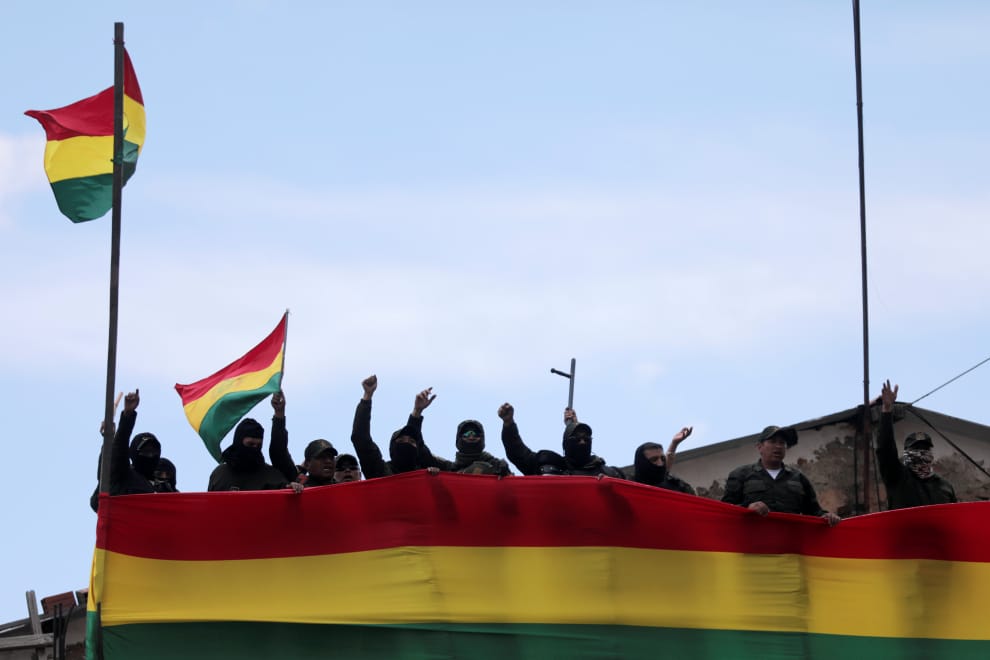本月 9號,鎮暴警察紛紛加入這場反政府示威運動,他們在屋頂上高舞玻利維亞國旗,標示著與人民站在一起的心情。